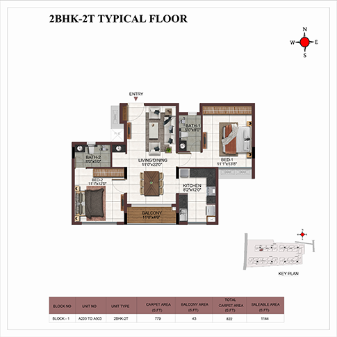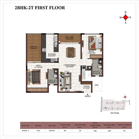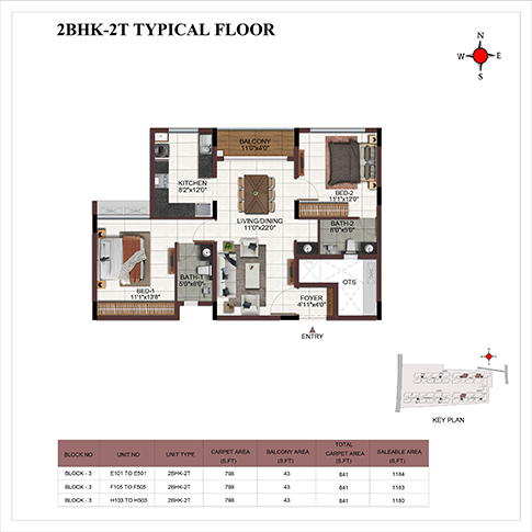 | 2 BHK | Apartment | 1148 Sqft - 1408 Sqft | ₹5399/- | ₹68L to ₹81L |