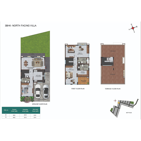 | 3 BHK + 3T | Villa | 2886 Sqft | 2349 Sqft | ₹ 1.75 Cr Onwards |